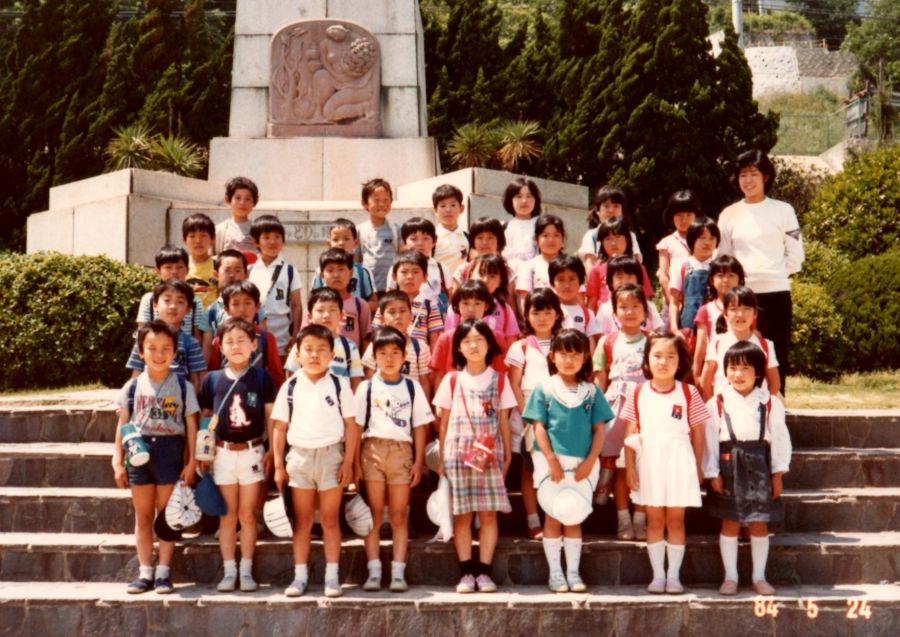 次の日かなりブルーでライオンズ帽をかぶって学校に行きました。いじめられるんじゃないか・・と思っていたんですが、意外や意外、「この状況でライオンズ帽をかぶってくる、勇気あるコアなライオンズファン」という事で、逆にリスペクトされ始めたんです(笑)。私も引くに引けず、コアなライオンズファンを演じることになってしまいました。ライオンズが勝った次の日は、みんなが「よかったなあ~!」と私の周りに集まって来る始末。全っっっ然興味ないのに、嬉しがっていましたが(笑)。写真の前列左から二番目が私です。後ろの人たちも写っていませんが、全員阪神帽です。
