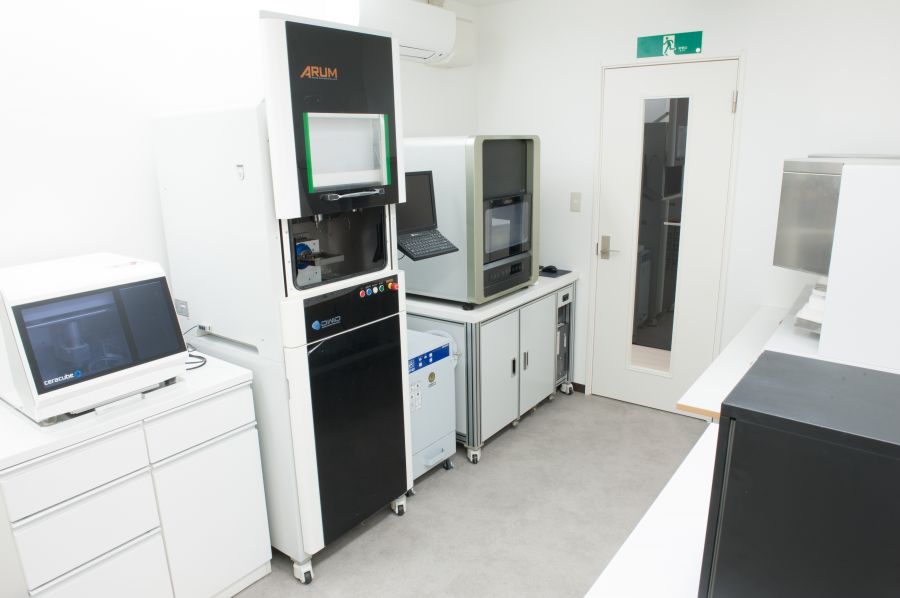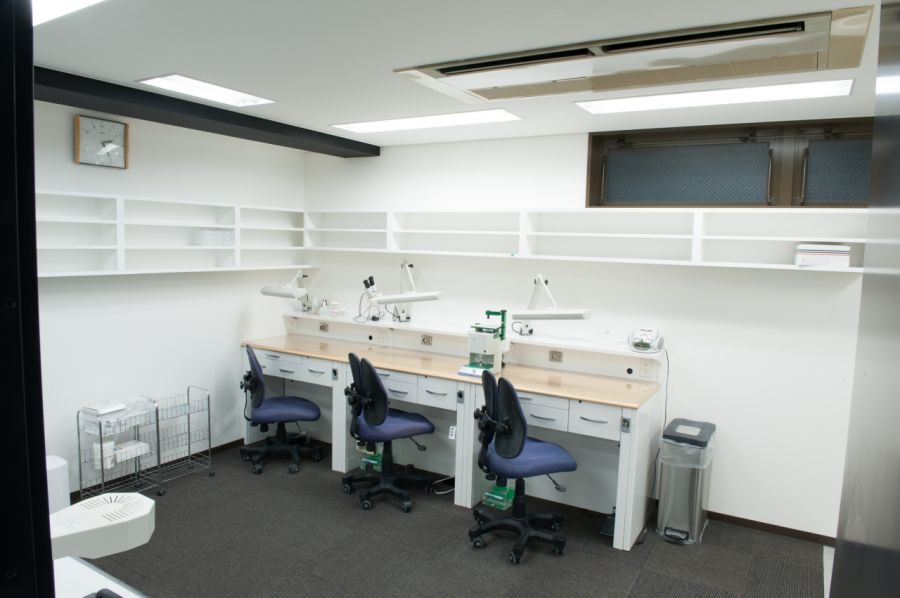 やはり広くなれば、だいぶ社内の雰囲気も変わります。今回特にエントランスにはかなりこだわりました。コンセプトは、「何の会社か分からんエントランス」(笑)。 イメージ通りのエントランスになりました。技工室は思いっきりスペースを贅沢に使いました。 セラミックルームはクリーンな環境で落ち着いて築盛出来るように、机と椅子にこだわりました。デジタルルームは、陽当たりのよい部屋でスキャニング出来るように設計しました。個人的には、この半円形の部屋の設計がかなり気に入っています。ミーティングルームは、モニターに直接パソコンを繋いでプレゼンができるようにしました。ここではお見せしませんが、ストックルームやロッカールームもかなりこだわってスペースをとって設計しました。
