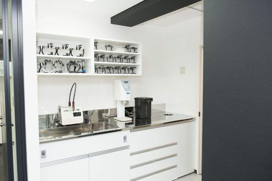 デザインはもちろんプロに任せましたが、デザイナーの「スタイリッシュな事務所にしたい」という想いと、歯科技工士の「使い勝手のいいラボにしたい」という想いのせめぎ合いが結構ありました。設計士とラボのスタッフ全員とで、夜中に何時間も何日間も、とことんお互いが納得いくまで話し合いました。部屋の配置やそれぞれの広さ、机の高さや色、コンセントの位置や収納の大きさ、その他もろもろをとにかく細かく話し合いました。 おかげで、機能的かつスタイリッシュなラボになったと思います。 皆妥協は一切ありませんでした。 ウチのスタッフは費用の事は考えずに、かなり意見を言いやがる・・・あ、言ってくださるんで(笑)、その結果、全員が納得のいくラボになったと思います。