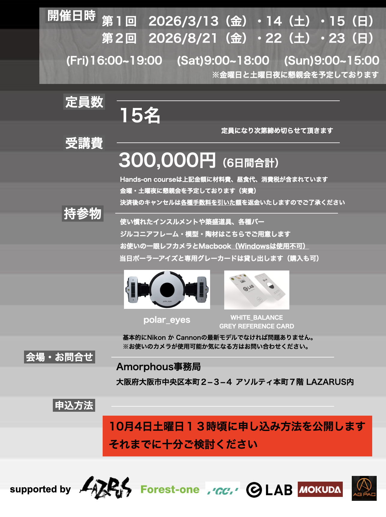 今までセミナー情報を公開するとすぐにソールドアウトとなり、「知らん間にいっぱいになっていた」というクレームをたくさん頂いたので(笑)、今回は内容を先にお伝えし、少し時間を空けて募集することといたします。